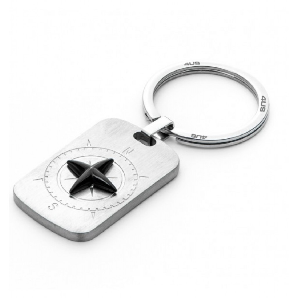 Portachiavi in acciaio 316-L con rose dei venti nera.
