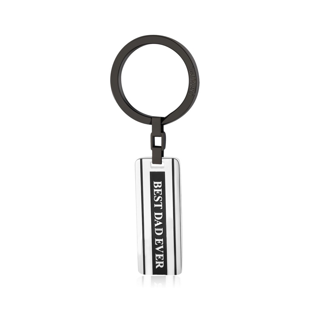 Portachiavi in acciaio 316-L satinato “Best dad ever/Miglior papà del mondo”.