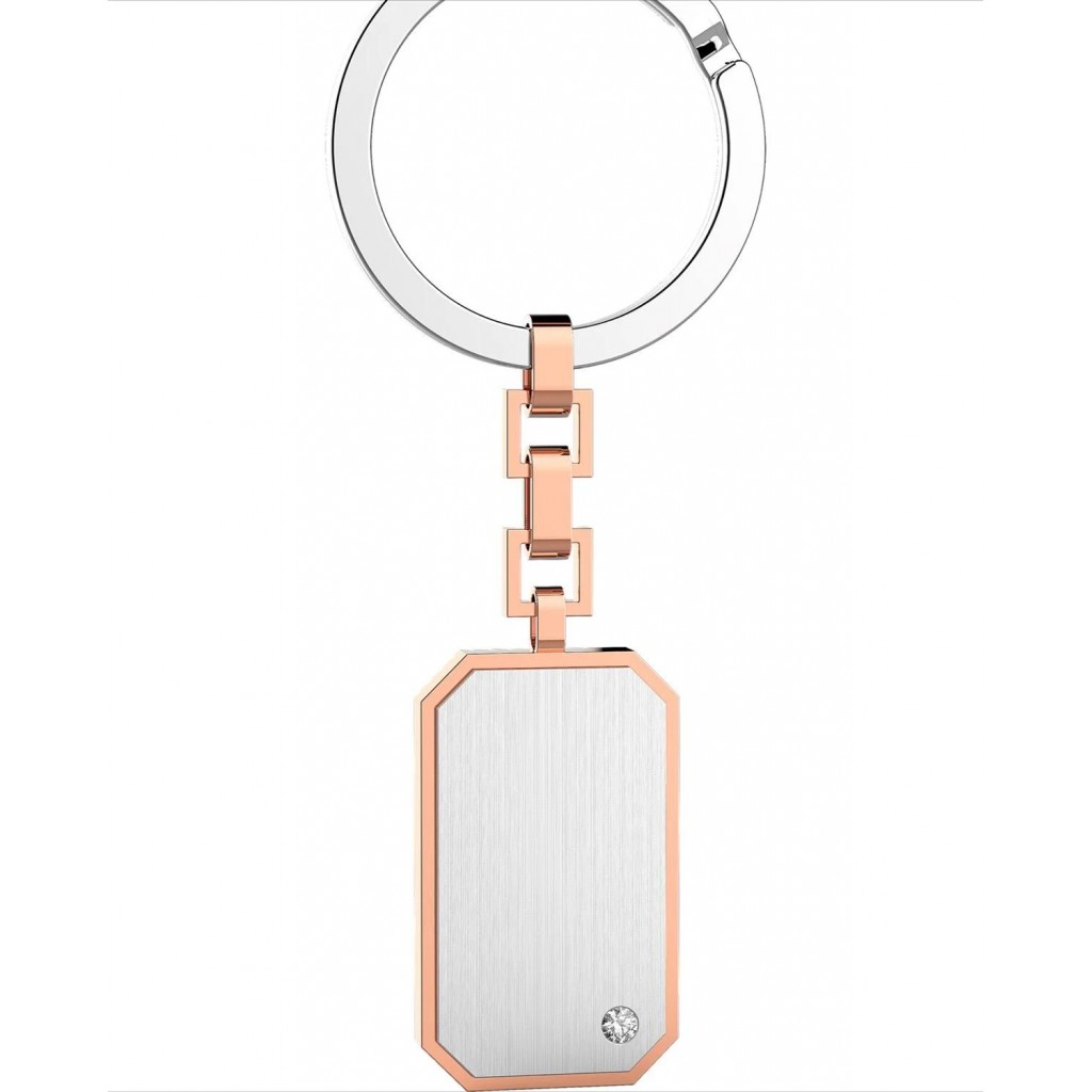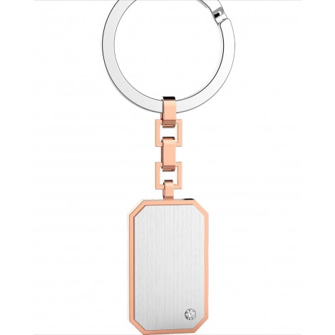 Portachiavi in acciaio 316-L satinato silver/rosè con zircone bianco.